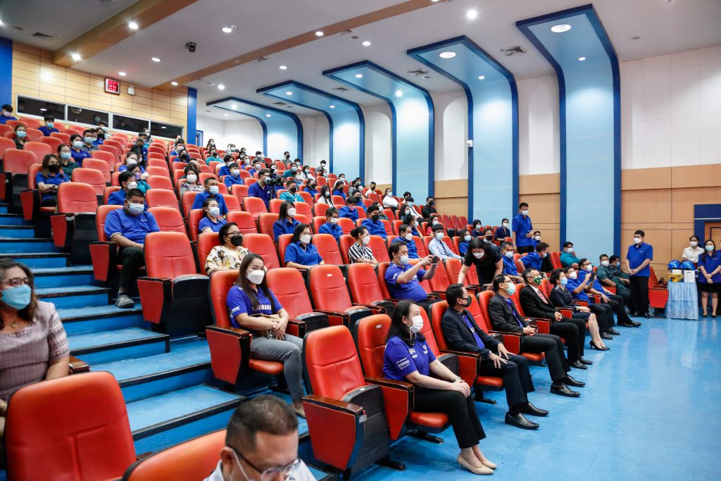 นายสมเกียรติ พูลขวัญ (คนที่ 6 จากขวา) รองผู้จัดการใหญ่ด้านบริหาร พร้อมผู้บริหารระดับสูง บริษัท ไทยยามาฮ่ามอเตอร์ จำกัด ร่วมมอบหมวกนิรภัยจำนวน 100 ใบ รวมมูลค่า 32,000 บาท ให้กับวิทยาลัยเทคโนโลยีภาคตะวันออก (อี.เทค) โดยมี นายประเสริฐ กลิ่นชู (คนที่ 5 จากซ้าย) ผู้อำนวยการวิทยาลัยเทคโนโลยีภาคตะวันออก (อี.เทค) เป็นผู้รับมอบ