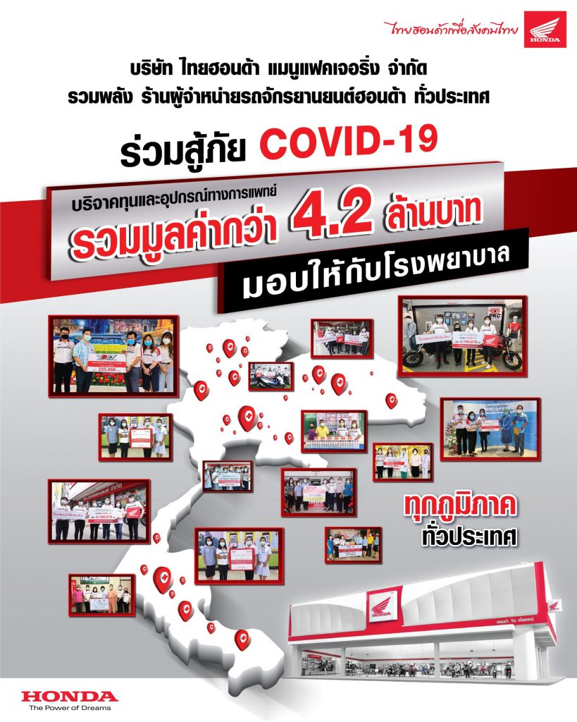 รถจักรยานยนต์ฮอนด้าบริจาคทุนและอุปกรณ์ทางการแพทย์ มูลค่ารวมกว่า 4.2 ล้านบาท สู้ภัยโควิค-19